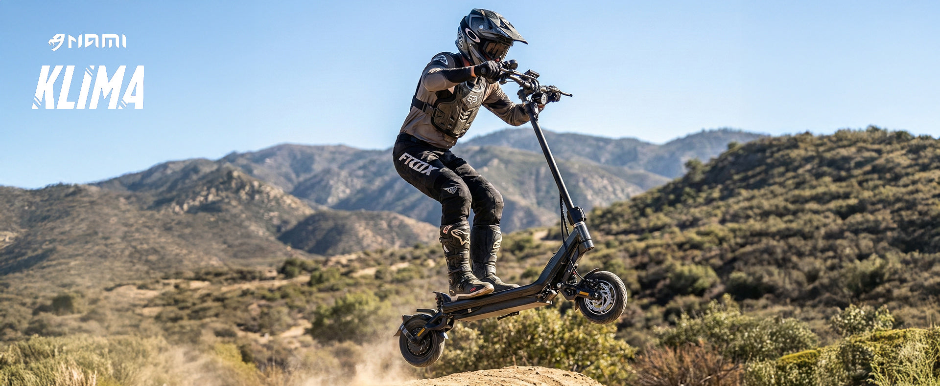 ה־NAMI KLIMA CARBON GLOSS מציב רף חדש בעולם הקורקינטים החשמליים. עם מנוע עוצמתי וסוללת 60V/26Ah, הוא מספק טווח רכיבה מרשים של עד 60 ק"מ. מערכת מתלים מתכווננת וצמיגי Tubeless בקוטר 10 אינץ’ מבטיחים יציבות, אחיזה ונוחות בכל תוואי - מכבישים עירוניים ועד שבילי שטח מאתגרים. לצד משקל קל של 30 ק"ג ומנגנון קיפול חכם, ה־ KLIMA KARBON GLOSS הופך לניידות חכמה, גמישה ומתקדמת — ללא פשרות על ביצועים או איכות.