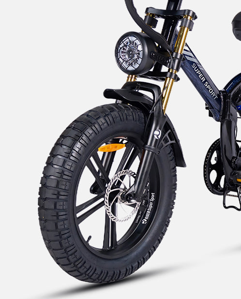 מצויד בבלמי שמן הידראוליים, צמיגי 20/4 אינץ' מספקים אחיזה ויציבות מצוינים, תאורה קידמית המזכירה אופנועים ועוד תכונות מרשימות