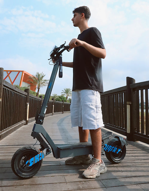 קורקינט RIDER X RACE מצויד בסוללת 60V 21AH, המאפשרת טווח נסיעה של עד 60 ק״מ. הגלגלים הגדולים בקוטר 11 אינץ’ עם צמיגי אנטי-פאנצ’ר מספקים יציבות מקסימלית ותחושת ביטחון ברכיבה. מערכת שיכוך מלאה מבטיחה נסיעה חלקה, גם בתנאים משתנים ובתוואי דרך מאתגרים.