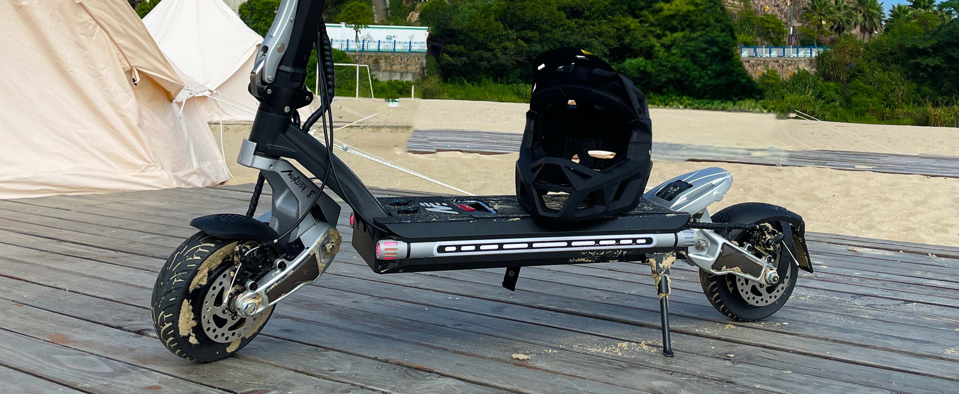 MUKUTA 8 PLUS מציע חוויית רכיבה מושלמת עם סוללה נשלפת 48V/15.6Ah לטווח של עד 70 ק"מ, וצמיגי 8 אינץ' מלאים ללא פנימית למניעת פאנצ'רים. הוא כולל שיכוך מלא לנוחות מקסימלית, בלמים הידראוליים ומכניים לבטיחות מרבית, ופנסי LED חזקים ואיתותים לנראות מעולה. מנגנון קיפול כפול ומפתח NFC הופכים אותו לנוח, בטוח ומתקדם לשימוש יומיומי.