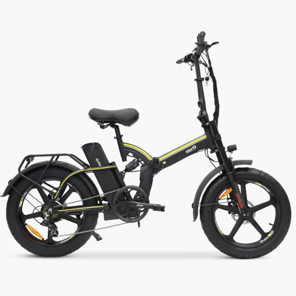 הכירו את Rider PRO PLUS מבית Rider, מותג הדו-גלגליים המוביל בארץ. האופניים החשמליים המתקדמים מצוידים בסוללת 48V 25AH לטווח נסיעה של עד 70 ק"מ. עם צמיגי 20 אינץ’ על 4 אינץ’, בולם זעזועים קדמי ואחורי הידראולי, ושלדת אלומיניום חזקה במיוחד במשקל 30 ק"ג. תאורת LED, פנס וצופר מובנה וצג דיגיטלי המבטיחים נסיעה בטוחה ונוחה בכל תנאי הדרך.
